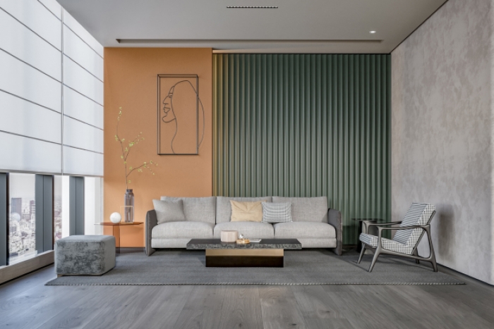 融合侘寂风 + 现代简约双风格,模块化布艺沙发 + 原木小圆桌打造松弛会客氛围,艺术装置 + 绿植点缀提升空间艺术感;用定制化的办公室洽谈区装修,满足商务接待、客户沟通、员工休闲等多元需求,全方位提升办公幸福感。