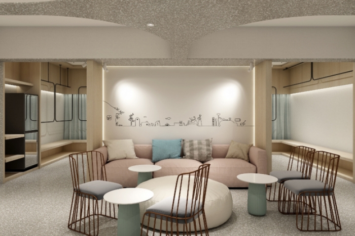 延续现代侘寂风办公风格,以裸露管线 + 环形轨道灯打造工业感与温润感并存的办公基底,原木办公桌 + 模块化沙发实现灵活办公布局,百叶窗引入自然光影,弱化传统办公的压抑感;用科学的办公室开放区设计,最大化提升小型空间利用率,满足团队协作与独立办公双重需求。