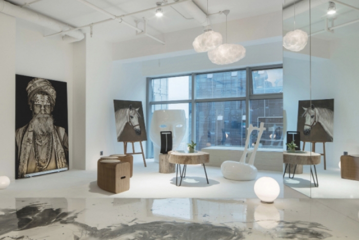 理论评析区:紧邻教学区,设置高清投影、实物展台与可移动座椅,搭配极简风作品展示墙,适配集中授课、作品赏析,兼顾教学功能与视觉美感。
